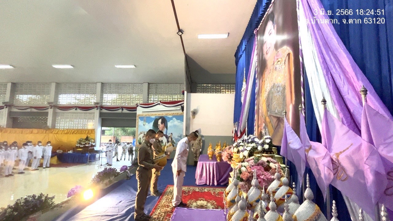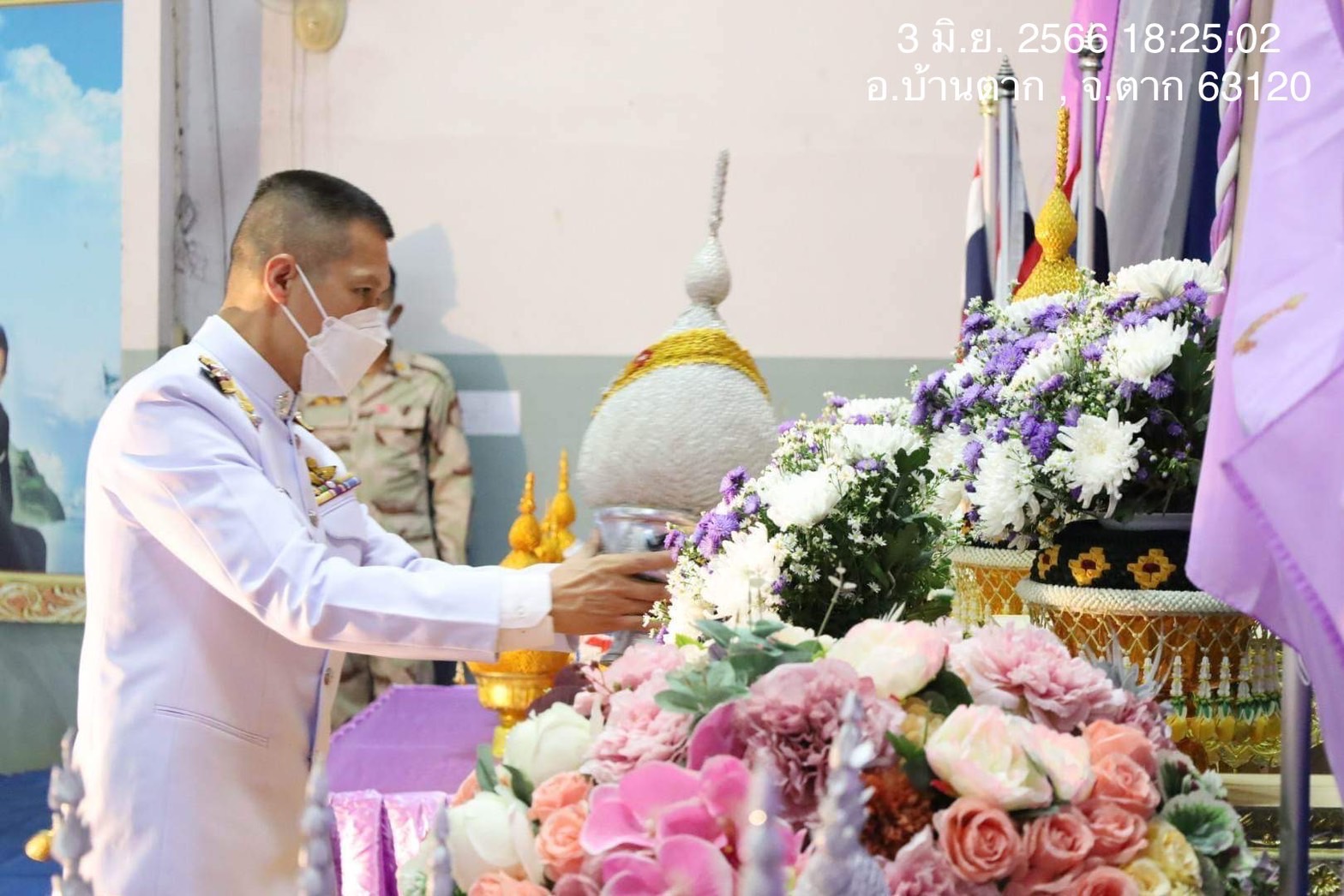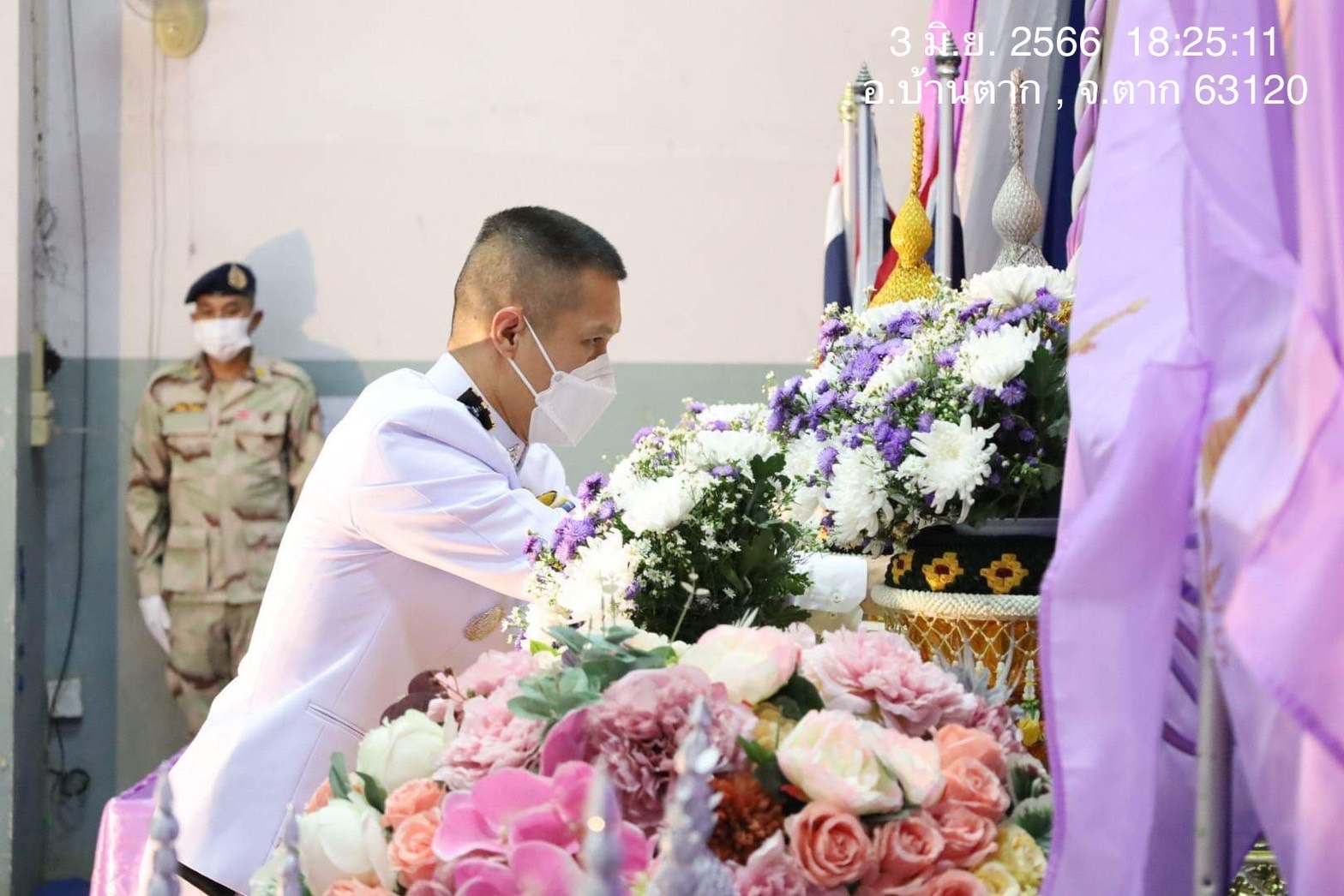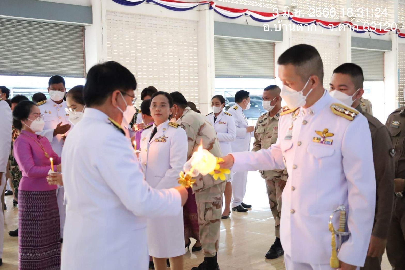 พ.ต.อ.สุรินทราดิษฐ ทิพย์เจริญ ผกก.สภ.บ้านตาก พร้อมด้วย ข้าราชการตำรวจ สภ.บ้านตาก ได้ร่วมพิธีถวายเครื่องราชสักการะ วางพานพุ่ม และพิธีจุดเทียนถวายพระพรชัยมงคล แด่สมเด็จพระนางเจ้าฯ พระบรมราชินี เนื่องในโอกาสวันเฉลิมพระชนมพรรษา 3 มิถุนายน 2566 ณ หอประชุมที่ว่าการอำเภอบ้านตาก ต.ตากออก อ.บ้านตาก จ.ตากโดยมี นายนวพล นวกุลพันธ์ นายอำเภอบ้านตาก เป็นประธานในพิธี
