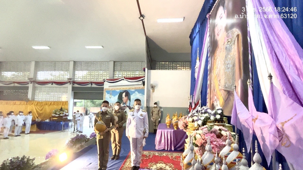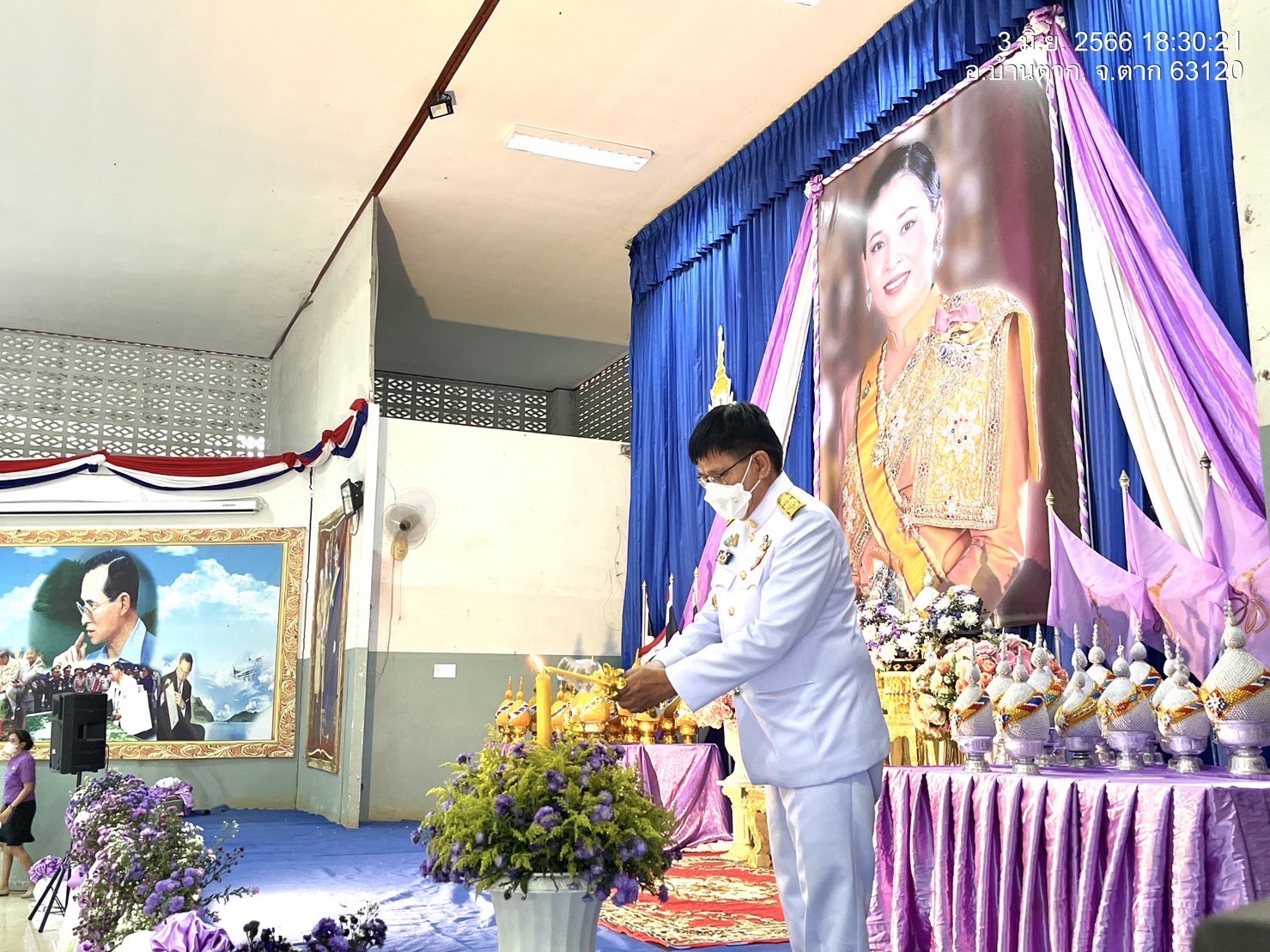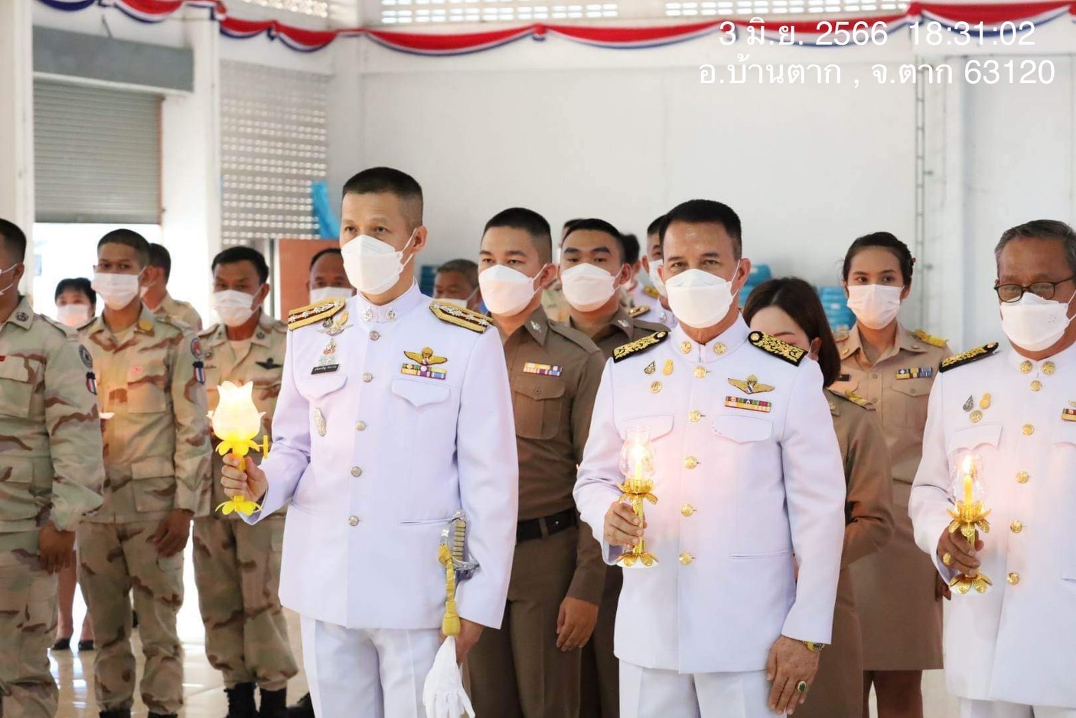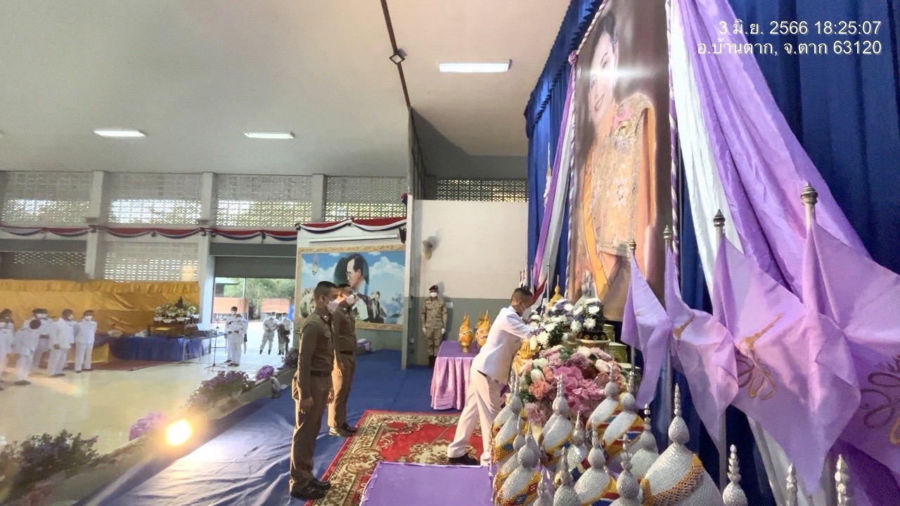 พ.ต.อ.สุรินทราดิษฐ ทิพย์เจริญ ผกก.สภ.บ้านตาก พร้อมด้วย ข้าราชการตำรวจ สภ.บ้านตาก ได้ร่วมพิธีถวายเครื่องราชสักการะ วางพานพุ่ม และพิธีจุดเทียนถวายพระพรชัยมงคล แด่สมเด็จพระนางเจ้าฯ พระบรมราชินี เนื่องในโอกาสวันเฉลิมพระชนมพรรษา 3 มิถุนายน 2566 ณ หอประชุมที่ว่าการอำเภอบ้านตาก ต.ตากออก อ.บ้านตาก จ.ตากโดยมี นายนวพล นวกุลพันธ์ นายอำเภอบ้านตาก เป็นประธานในพิธี