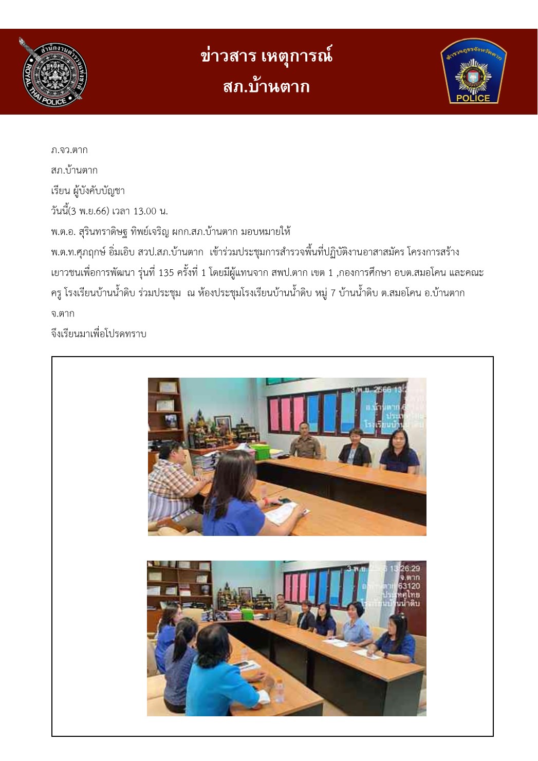 เข้าร่วมประชุมการสำรวจพื้นที่ปฏิบัติงานอาสาสมัคร โครงการสร้างเยาวชนเพื่อการพัฒนา รุ่นที่ 135 ครั้งที่ 1