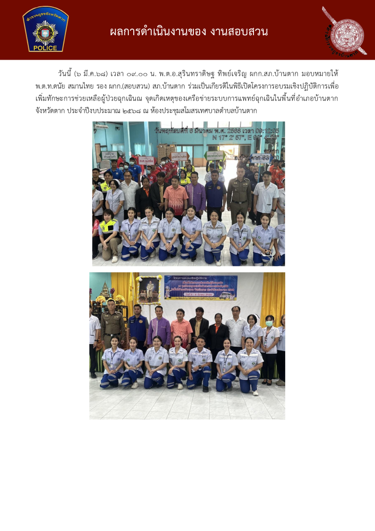 วันนี้ 10 มี.ค.68 เวลา 14:00 น. พ.ต.ท.ณตศพงษ์ ไมตรี รอง ผกก.ป.สภ.บ้านตาก หัวหน้าชุดปฏิบัติการตำบลยั่งยืน ประชุมชี้แจง ซักซ้อมทำความเข้าใจ ในการดำเนินงานตามโครงการตำบลยั่งยืนเพื่อแก้ไขปัญหายาเสพติดแบบครบวงจรตามยุทธศาสตร์ชาต