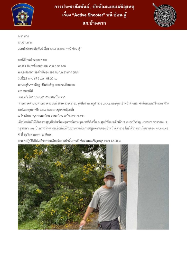 ซักซ้อมแผนวิธีการเอาชีวิตรอดในเหตุกราดยิง Active Shooter /บุคคลคลุ้มคลั่งณ ศูนย์เด็กเล็กท้องฟ้า ต.ท้องฟ้า อ.บ้านตาก จ.ตาก