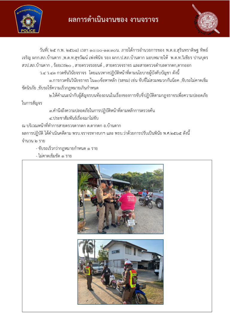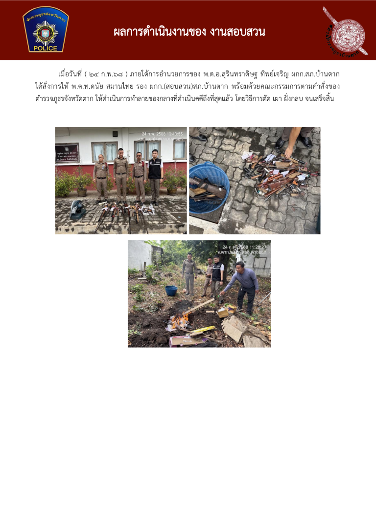 วันที่( 25 ก.พ. 2568) เวลา 10:00-11:30น. ภายใต้การอำนวยการของ พ.ต.อ.สุรินทราดิษฐ ทิพย์เจริญ ผกก.สภ.บ้านตาก ,พ.ต.ท.สุขวัฒน์ เพ่งพินิจ รอง ผกก.ป.สภ.บ้านตาก มอบหมายให้ พ.ต.ท.วิเชียร ปานบุตรสวป.สภ.บ้านตาก , ร้อยเวร20 , สายตรวจรถยนต์ , สายตรวจจราจร และสายตรวจตำบลตากตก,ตากออก