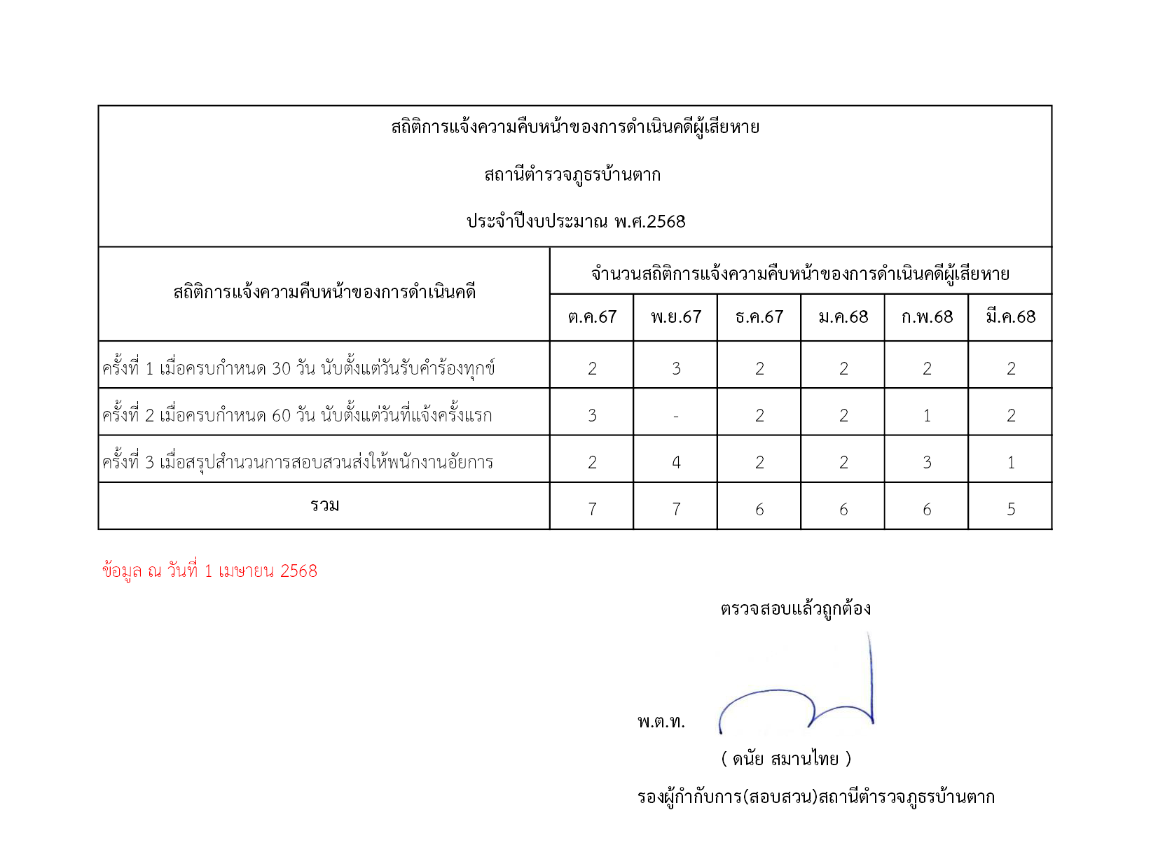 สถิติการแจ้งความคืบหน้าของการดำเนินคดีผู้เสียหาย
