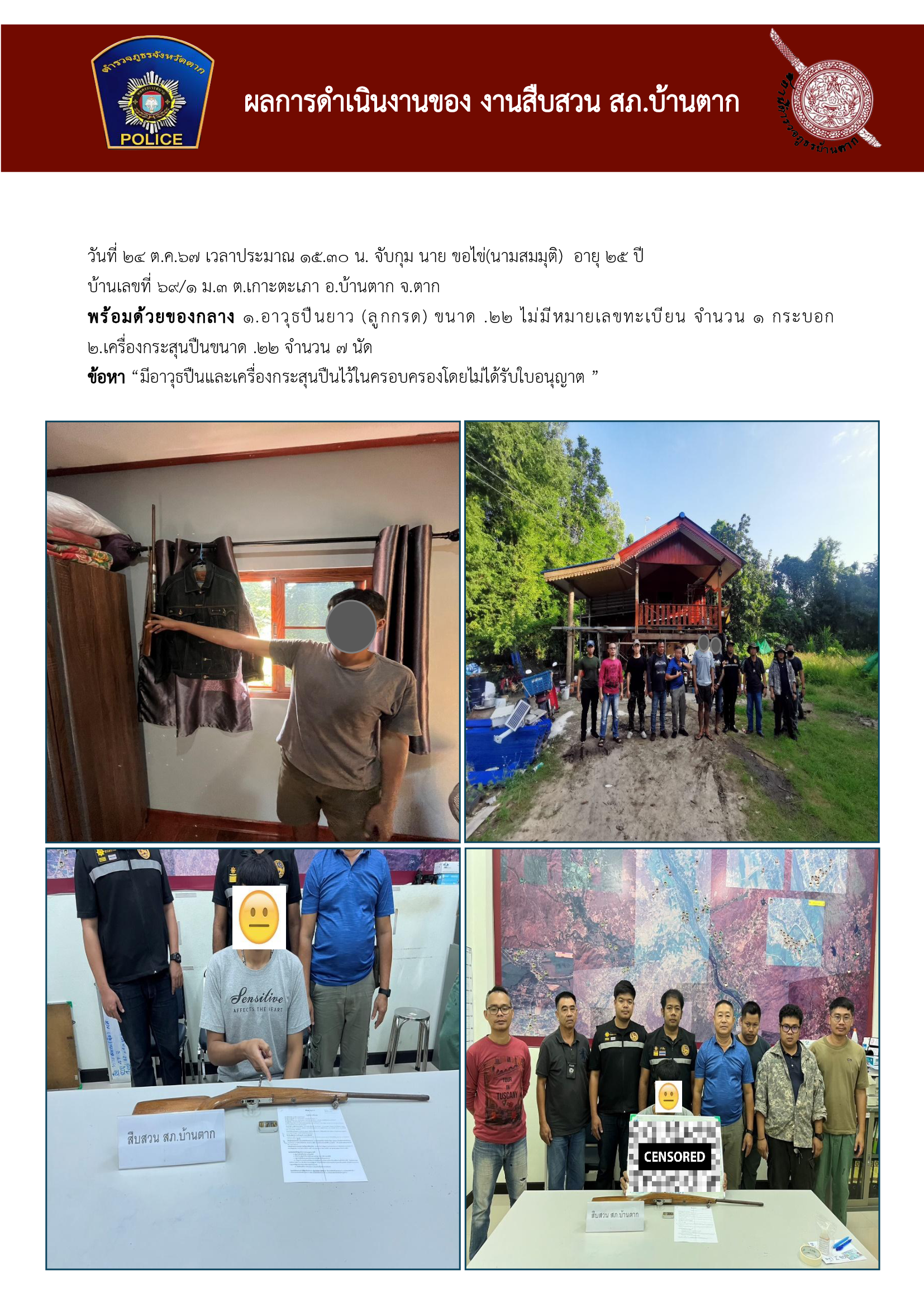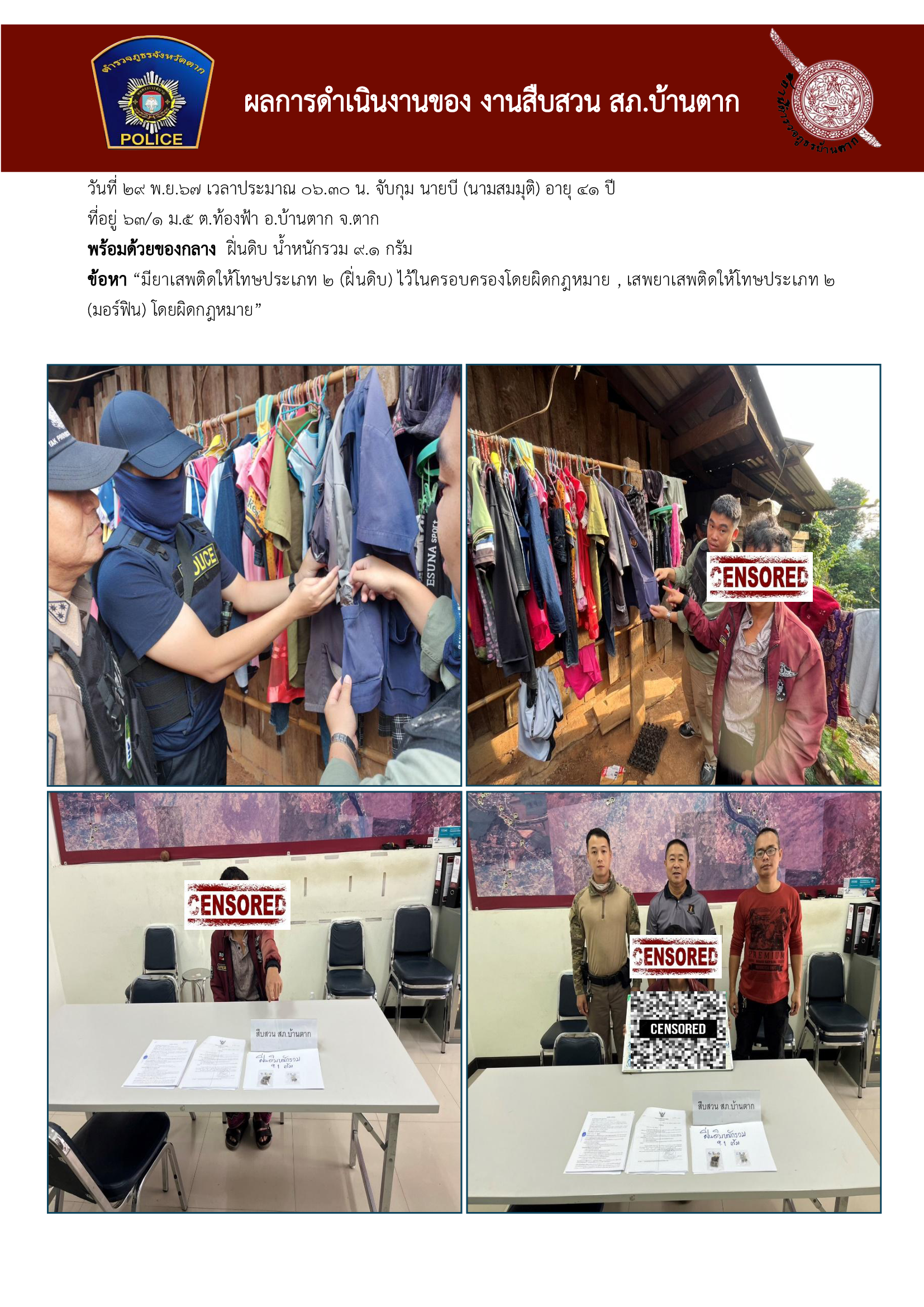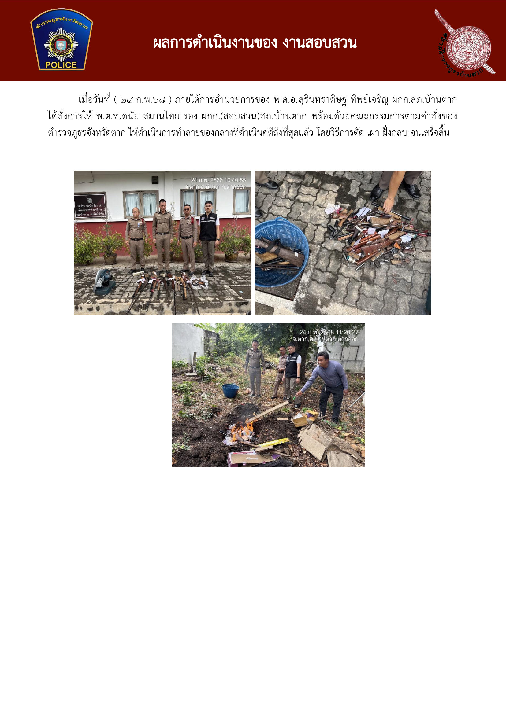 ผลการดำเนินงานของสถานีตำรวจภูธรบ้านตาก ประจำปีงบประมาณ 2568