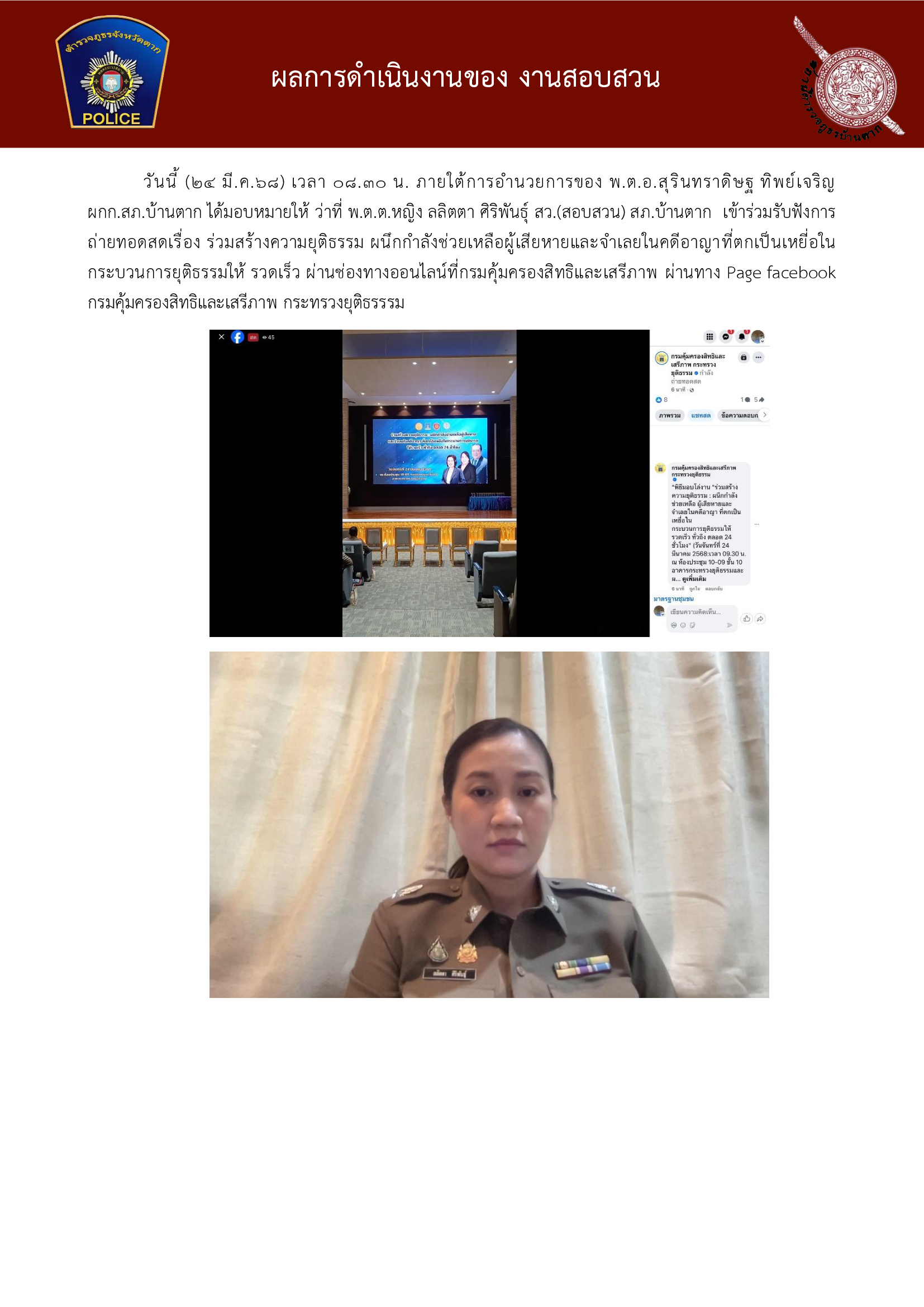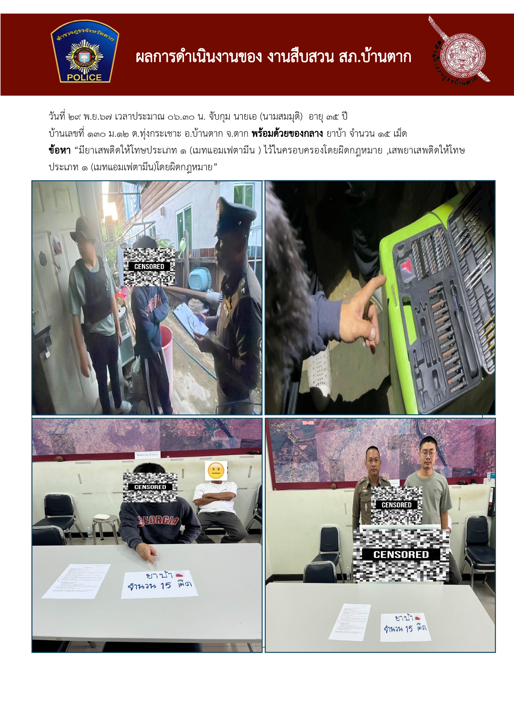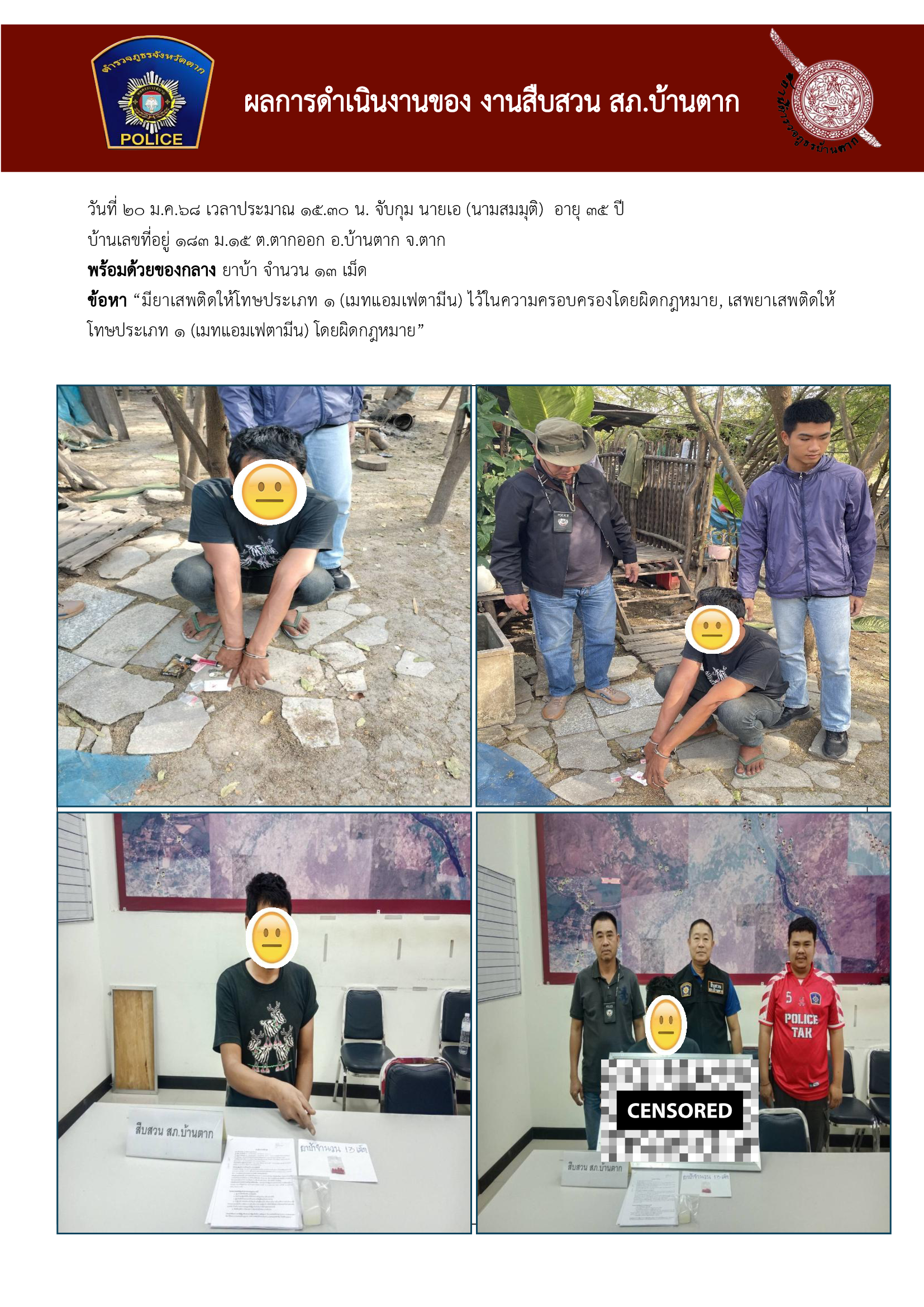 ผลการดำเนินงานของสถานีตำรวจภูธรบ้านตาก ประจำปีงบประมาณ 2568